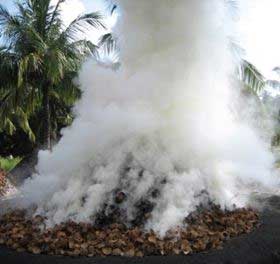 現代一般使用化學法將椰子殼熱解成碳。然而在以前,椰殼活性炭的做法是在椰子生產地大量收購椰子殼,在地上挖一個大坑把椰子殼放進去高溫悶燒炭化。這是一個相當簡單的方法,將椰子殼放置在相對較寬的淺坑內,用炭灰覆蓋,并在有限的氧氣條件下燃燒。這是一種歷史悠久的傳統材料炭化料的生產方法。然后將這些炭化材料出售給活性炭生產商進行質量檢查和生產活性炭。一些制造商可以通過直接購買坑式炭化機預篩選的材料來降低質量控制成本,以最小化預活化處理。這可能導致質量問題,因為坑式濃縮機通常按重量出售炭化材料- 例如,如果經受活化窯的高溫并且使產品不安全內含有沙子之類的未經篩選的污染物會變成玻璃狀異物這不利于用于飲用與食品有關的應用。