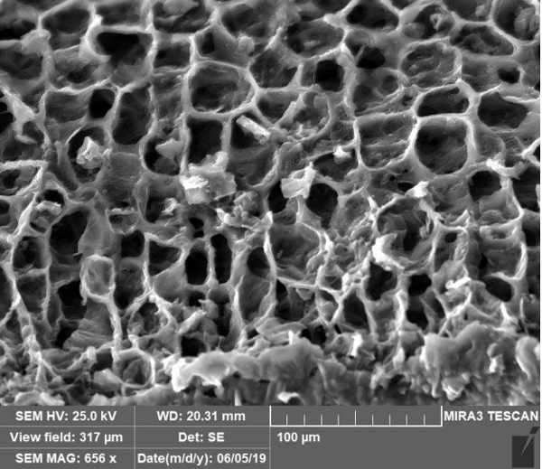對一個碳化硅樣品進行掃描電鏡(SEM)成像,以確定其表面白色物質的組成。在掃描電子顯微鏡下分析時,確定該材料為碳化硅纖維,范圍為6-10µm。從爐中取出的樣品如圖3頂部所示,隔板下方的樣品為活性炭。
