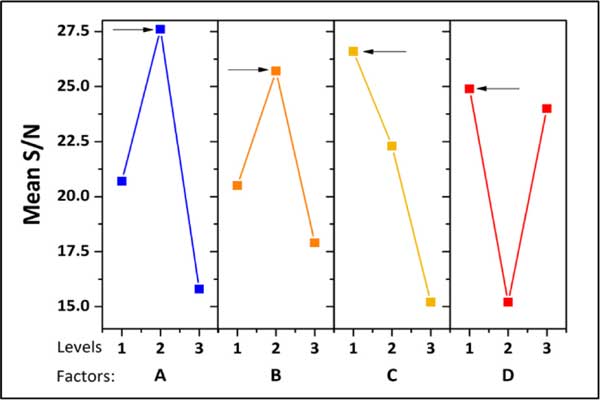 環(huán)己烷和苯在測試活性炭上的二元吸附,有相應(yīng)的穿透曲線。活性炭E4對二元混合物中的兩種碳?xì)浠衔镲@示出最高的吸附能力。盡管樣品E4的苯吸附容量較高,但其選擇性低于其他活性炭(E9>E5>E6>E3>E1>E8>E2>E4>E7)。所有活性炭都優(yōu)先吸附苯,但樣品E1、E4、E5和E8顯示出很高的苯吸附能力。填充床的小數(shù)容量比在單組分氣體吸附更大的二進(jìn)制吸附。當(dāng)使用低吸附物濃度時(shí)填充床的吸附效率增加。表明活性炭材料可以更容易、更有效地吸附傳質(zhì)區(qū)中的碳?xì)浠衔铩T诙旌衔锓蛛x中,對活性炭苯吸附能力影響最大的因素是:活化劑、浸漬比和物理活化時(shí)間。吸附劑E1、E4、E5、E6和E8顯示出很好的信噪比。圖3說明了在測試條件下制備活性炭的平均S/N比。總體而言,制備具有高吸附能力的活性炭以從二元混合物中分離苯的合適條件已驗(yàn)證。