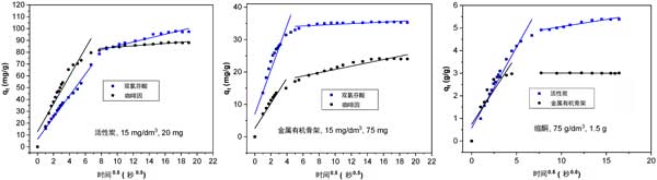 圖2:在活性炭和有機金屬骨架上吸附有機分子的粒子內擴散模型。