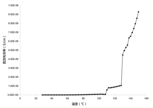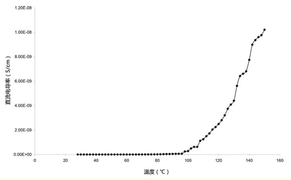 活性炭環氧梯度復合材料在距外圍不同距離處的密度。這表明與外圍距離的增加會降低復合材料的密度。這是由于活性炭含量的減少。圖1顯示了活性炭粉末填充環氧樹脂樣品1的直流電導率隨溫度的變化。在該圖中,直流電導率在108℃時增加,然后在112℃時變得恒定,直到128℃,然后突然增加直流電導率在128℃后升高,最高可達150℃。