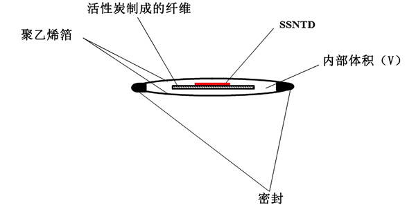 帶溫度補償的活性炭探測器模塊設計如圖1所示。內部傳感器使用活性炭吸附器和固體核徑跡探測器(SSNTD)。在本實驗中,使用了三種活性炭制成的纖維。活性炭用作氡收集器/散熱器,而SSNTD則檢測輻射量。補償模塊的壁由低密度聚乙烯或高密度聚乙烯箔制成。根據造型選擇箔的厚度和表面積,以達到合適的溫度補償。。當探測器在探測器模塊外時,校準系數為CF0。然而,當探測器放置在其校準因子內時,平衡時將為CF =CF0.ρ,其中ρ是“穿透率”,即模塊體積內空氣中的平衡時氡濃度與濃度的比值在它周圍的空氣中。CF0與吸附容量k成正比并且遵循與k相同的溫度趨勢,而CF與kρ成正比。正如在其他地方所指出的,穿透體積中壁的部分ρ隨著溫度的升高而增加,因此溫度的趨勢與k的趨勢相反。選擇氣體擴散通過的壁材、厚度、壁表面積和“補償模塊”的體積,以使kρ的溫度變化在應用的溫度區間內盡可能小。