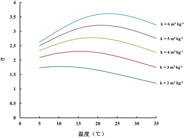 圖3:對于不同的k值,模塊的η= kρ的溫度依賴性。