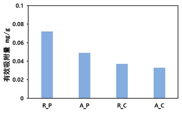 在本研究中的吸附劑中,果殼活性炭對四種低沸點THC氣體表現出最高的有效吸附能力。在現場條件下,使用低沸點和高沸點混合THC氣體。這里描述的實驗是在不同的進料條件下進行的,如下:(1)100ppm甲烷(bp-162℃),(2)100ppm低沸點THC(乙烯bp-103.7℃,乙烷bp)-89℃,丙烯沸點-47.6℃,丙烷沸點-42℃),以及混合THC,包括30ppm己烷(沸點69℃)和70ppm低沸點THC,在果殼活性炭下進行100毫升/分鐘。如圖4所示,甲烷、低沸點THCs和混合THCs的有效吸附容量分別為0.0462mg/g、0.072mg/g和2.884mg/g。這些結果表明沸點與有效吸附容量成反比。