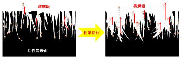 活性炭表面微孔體積與外部孔體積之比越高,解吸反應就越困難,因為已吸附的氣體必須通過復雜而長的通道釋放。相反,較低對應于表面上較大體積的大直徑孔。即使吸附物被深深地吸附到活性炭表面,解吸反應也可以沿著寬闊而簡單的通道輕松快速地進行。也就是說,活性炭表面的比率越高,解吸反應受到的抑制程度就越大,從而導致吸附容量越高。