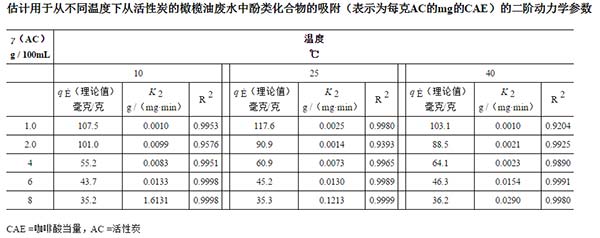 橄欖油廢水中酚類化合物處理由大多都由活性炭來(lái)吸附,本期帶大家了解活性炭的吸附劑量和溫度的影響。在最佳條件下(每100毫升8克活性炭),每克活性炭表示當(dāng)量mg的活性炭的最大吸附容量為10.8℃時(shí)為35.8℃,25℃為35.4℃,40℃時(shí)為36.1℃ C。偽二階模型被認(rèn)為是最適合于動(dòng)力學(xué)結(jié)果,并且選擇Langmuir等溫線來(lái)更好地描述吸附系統(tǒng)。結(jié)果證實(shí)了活性炭從橄欖油流出物中幾乎除去所有酚類化合物部分的效率。