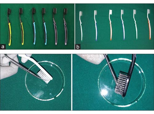 圖1:(a)活性炭牙刷。(b)非炭牙刷。切下刷毛并在分開的無菌培養皿上收集。