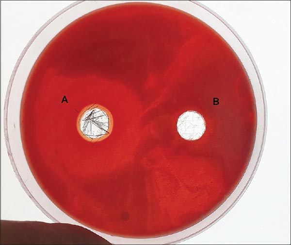 圖5:(A)與木炭刷毛有關的10毫米抑制區。(B)發現與非炭鬃相關的3mm抑制區。
