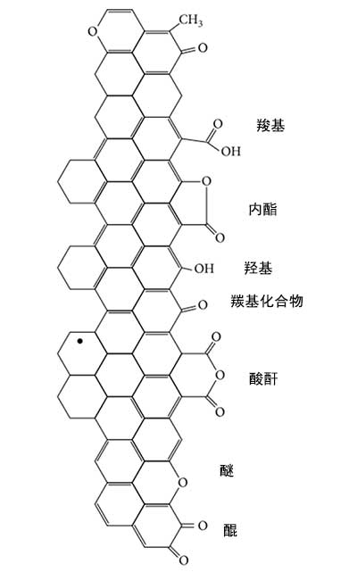 圖4:在活性炭上發現的主要表面基團的示意圖。