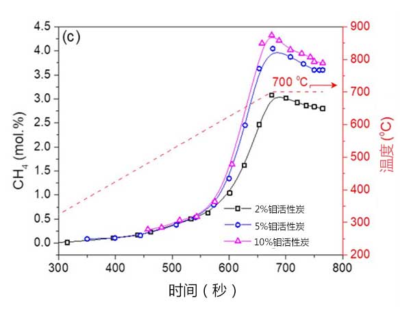 圖2:在碳熱還原過程中產生的CH4(mol.%)的分布。