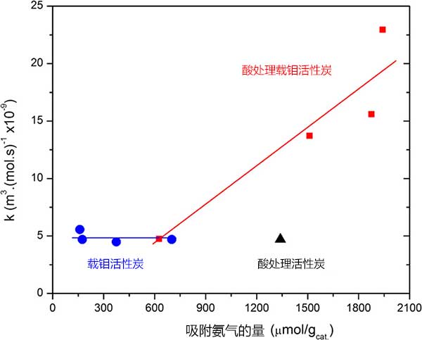 3:活性炭吸附的氨氣與第二級酯化反應速率常數之間的相關性。