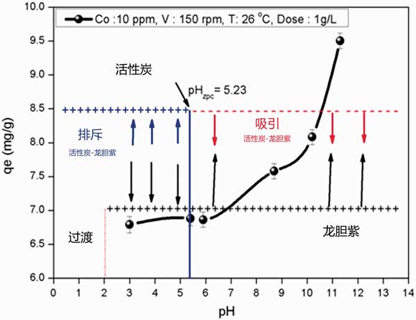 圖1:作為pH的函數(shù)的龍膽紫染料在活性炭上的吸附演變。