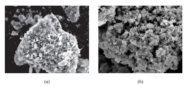 圖3:催化劑的SEM表征(a)商業催化劑,(b)Cu/ZnO/活性炭催化劑。