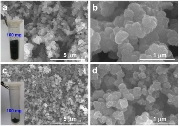 圖2中的插圖是兩種活性炭的數碼照片。當將相同量的兩種活性炭(100 mg)放入相同體積的離心管(5 mL)中時,活性炭-1粉末占據的體積更大,這表明他的密度較低。通過掃描電子顯微鏡研究了他們的形態。如圖2所示可以看出,與原始材料相比,兩種活性炭的外觀變化不大。但是,它們的粒徑不同。顯然,活性炭-1的顆粒大于活性炭-2的顆粒。這些顆粒聚集在一起并形成多孔形態;钚蕴-1具有更大的孔徑,表明較疏松的多孔結構。