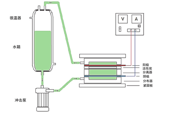 圖1:活性炭電吸附實驗的示意圖。