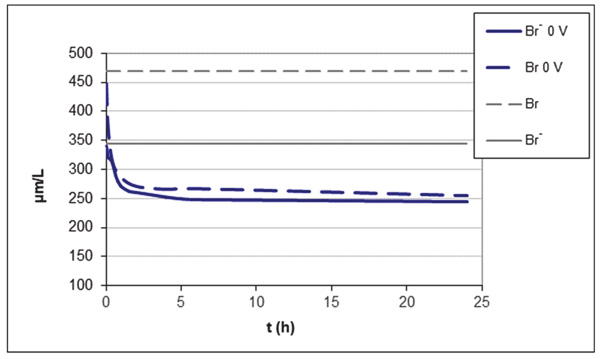 圖2:在沒有電壓的情況下溴化物和總溴濃度的變化。