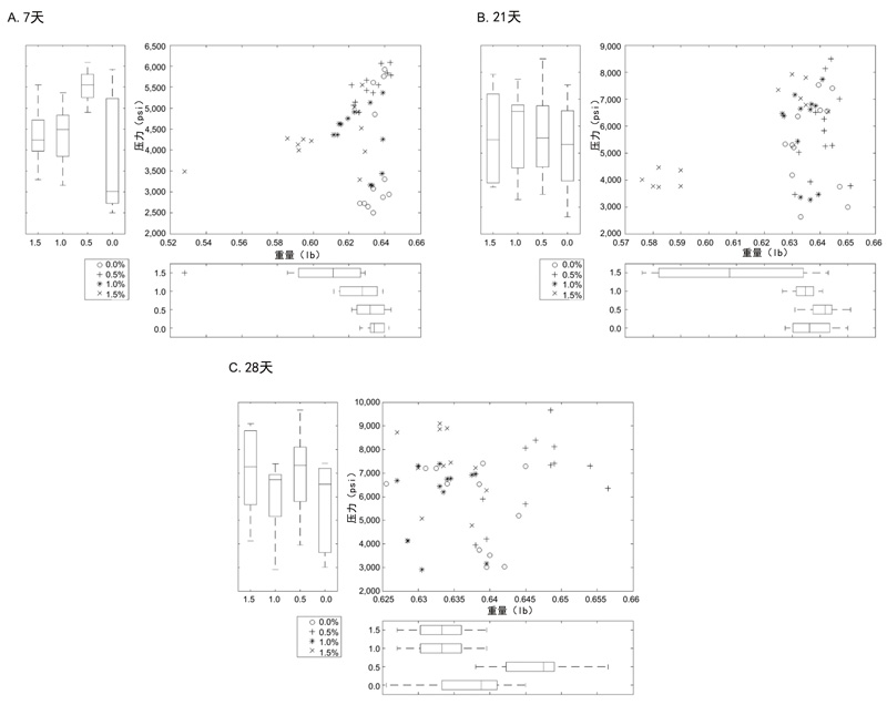 圖2:活性炭含量,抗壓強度和樣品重量之間的關(guān)系。