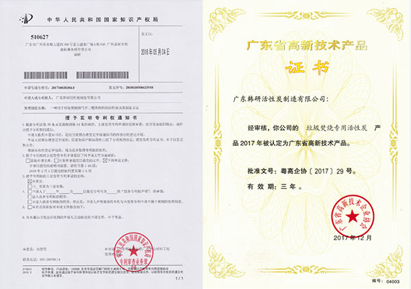 廣東省高新技術產品,垃圾焚燒專用活性炭。